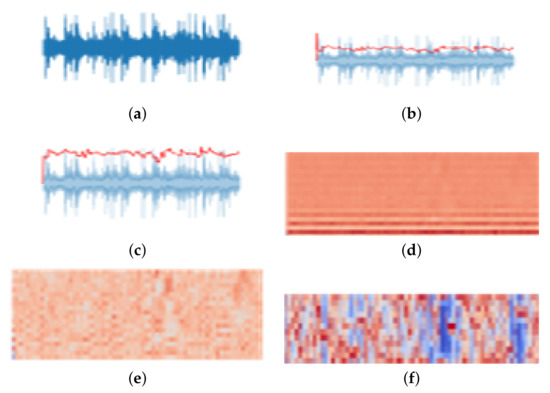 Six different audio-image representations of the same action. Each image represents different characteristics of the same audio signal (adopted from [19]). (a) Waveplot. (b) Spectral Centroids. (c) Spectral Rolloff. (d) MFCCs. (e) MFCCs Feature Scaling. (f) Chromagram.