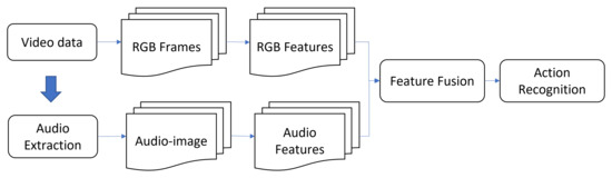 - Shaikh, M.B.; Chai, D.; Islam, S.M.S.; Akhtar, N. MAiVAR: Multimodal Audio-Image and Video Action Recognizer. In Proceedings of the International Conference on Visual Communications and Image Processing (VCIP), Suzhou, China, 13–16 December 2022; pp. 1–5. [Google Scholar] [CrossRef]