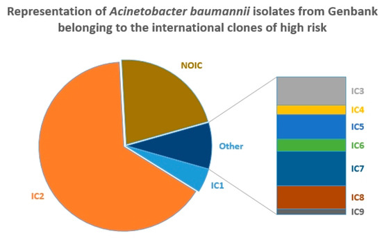 Representation of A. baumannii isolates belonging to the international clones of high risk in Genbank. ‘NOIC’ represents the isolates not belonging to IC1-IC9.