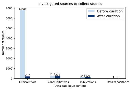Three main sources including global initiatives, clinical trials, and publications were investigated. Over 7000 studies were investigated, from which, following curation, around 500 studies were added to the data catalogue.