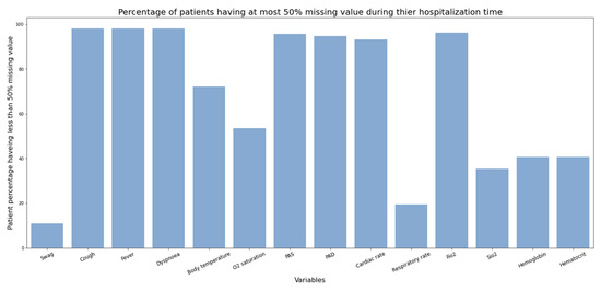 Percentage of patients having at most 50% missing values during hospitalization time.