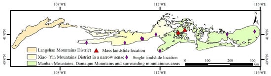 For a long time, the Inner Mongolia Autonomous Region, which is an underdeveloped region in the north of China, has not paid sufficient attention to the problem of geologic hazards, so the relevant research results are relatively limited. However, the geological conditions of the region are complex, the ecological environment is relatively fragile, and historically, geologic disasters have been characterized by a wide range of points [13]. With the advancement of economic construction, geologic disasters occur frequently, posing an increasingly serious threat to the lives and properties of the people of the region, so the problem of geological disasters has now become extremely urgent and cannot be ignored. In order to fill this gap, this paper establishes a cataloging database of landslides in the Yinshan Mountains Range region of China using remote sensing technology, which provides practical help for disaster prevention and mitigation in this region.