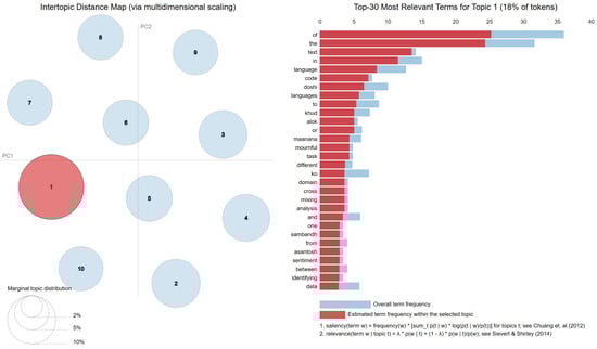 - Sievert, C.; Shirley, K. LDAvis: A Method for Visualizing and Interpreting Topics. In Proceedings of the Workshop on Interactive Language Learning, Visualization, and Interfaces, Baltimore, MD, USA, 29 June 2014. [Google Scholar]