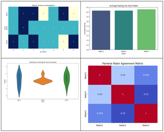 - The judges exhibit high confidence in the process of annotation, expressing a strong belief in the accuracy of the deep pragmatic analysis of five principles-based emotion annotations. The average confidence ratings range from 4.14 to 4.29 (on a scale of 1 to 5), indicating high confidence. The pairwise agreement matrix shows moderate to high consistency among raters (positive values, e.g., 0.18 to 1), as does the histogram of Kappa scores, which indicates a moderate level of agreement between rater pairs. In the end it can be said that there is a high level of agreement among raters regarding emotion intensity and primary emotion identification. This conclusion is supported by the consistency observed in the average ratings and pairwise agreement matrix values.