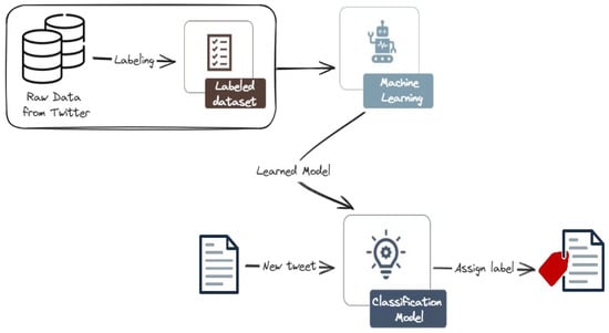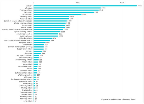 | Deshmukh et al. (2022) [24] | Cybersecurity threats relevant data | Labeled 21,000 tweets were collected using a python package Tweepy | Five ML models: SVM, random forest, decision tree, XGBoost and AdaBoost | Decision tree with F1-score of 87.54% |