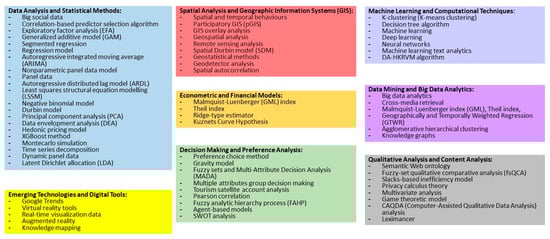 - Agrawal, R.; A Wankhede, V.; Kumar, A.; Luthra, S.; Huisingh, D. Big data analytics and sustainable tourism: A comprehensive review and network based analysis for potential future research. Int. J. Inf. Manag. Data Insights 2022, 2, 100122. [Google Scholar] [CrossRef]