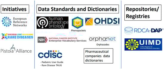 c4c brought together international stakeholders from academia, industry, data standards consortia, data repositories, and large paediatric health networks to evaluate the feasibility of disease-specific data standardisation. Due to the sheer volume of disease-specific resources, the focus remained on the use of existing resources that could aid in eventually achieving standardisation. These include resources that enable pooling of data (e.g., registries), promote interoperable data through common data standards, increase the FAIRness of data, develop data dictionaries, and maintain repositories for clinical data. The initiatives and resources are discussed below. Additional resources that collaborate with these resources have also been briefly discussed. The level of detail about each resource is not representative of its importance in the field, and the list is not meant to be exhaustive.
