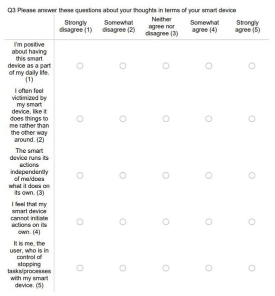 Comparative Studies: Researchers can use the dataset to conduct comparative studies with other datasets or research findings in the field of human–computer interaction (HCI) and related disciplines. By comparing responses across different datasets or studies, researchers can identify commonalities, discrepancies, and emerging trends in users’ perceptions and interactions with smart devices. This comparative analysis can contribute to a deeper understanding of user–device relationships and inform future research directions in the field.