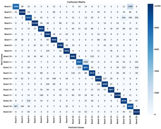 As is evident, this proof of concept was far from optimized. Tuning hyperparameters and exploring more suitable architectures are essential to unlock its full potential. This can be appreciated in the slight confusion that the model incurred at times, as is the case with boards 1 and 19. The sub-optimal performance and inadequacy of the model, combined with the use of a small portion of the dataset, limited its capacity to extract generalizations about the differences in hardware responses of these ultra-low power devices. However, since delving into these ideas is beyond the scope of this paper, the extent of its capabilities will be explored in future research endeavors.