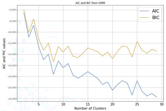 AIC and BIC values for a maximum of 30 clusters and a minimum of two. Reprinted with permission from Ref. [27].