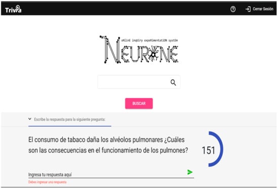 Taking a closer examination of the Chilean educational landscape, we initiated a cross-sectional study to assess elementary school students’ OIC within a near-realistic context. Our diagnostic framework encompasses a spectrum of information challenges within the natural sciences, stratified by grade level (i.e., fourth, sixth, and eighth grades), question category (i.e., closed questions, descriptive, causal explanation, verification, prediction, difficulty (i.e., easy, intermediate, hard), and generalization []), and challenge type (i.e., open answer and source evaluation). To engage students in the diagnostic process while maintaining control over the information resources accessed during search sessions, we utilized the Trivia game [], powered by the NEURONE ecosystem []. Consequently, both the challenges and the repository of information resources (e.g., web pages, images, and videos) were loaded into the Trivia platform. This facilitated an experiential learning environment for students, simulating search experiences akin to those provided by contemporary search engines such as Google and Bing.