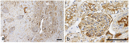 - Yabuki, A.; Mitani, S.; Mizukami, K.; Yamato, O. Nephron Segment Identification in the Normal Canine Kidney by Using Lectin Histochemistry. Res. Vet. Sci. 2012, 93, 560–564. [Google Scholar] [CrossRef]
