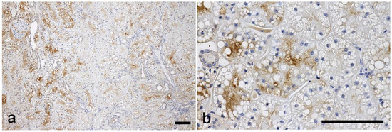 - Silva, F.G.; Nadasdy, T.; Laszik, Z. Immunohistochemical and Lectin Dissection of the Human Nephron in Health and Disease. Arch. Pathol. Lab. Med. 1993, 117, 1233–1239. [Google Scholar] [PubMed]