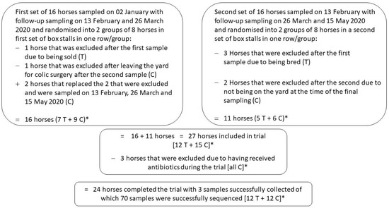 - Salem, S.E.; Maddox, T.W.; Berg, A.; Antczak, P.; Ketley, J.M.; Williams, N.J.; Archer, D.C. Variation in faecal microbiota in a group of horses managed at pasture over a 12-month period. Sci. Rep. 2018, 8, 8510. [Google Scholar] [CrossRef] [PubMed]