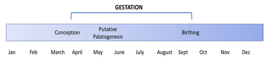 - Guimarães, G.; Oliveira, I.; Sousa, P.; Doriqui, M.; Fiamoncini, E.; Ferreira Júnior, O.; Consolaro, A. Cleft LIP and palate in babies with microcephaly by zika virus: Would there be an etiopathogenic relationship? Int. J. Oral Maxillofac. Surg. 2019, 48, 21. [Google Scholar] [CrossRef]