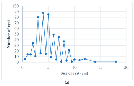 Variation in cyst size, (a). all cyst, (b). fertile cyst.