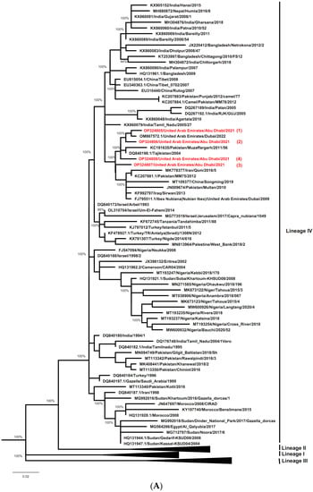 3.4.2. Characterization of PPRV Strains and Determination of its Geographical Lineage