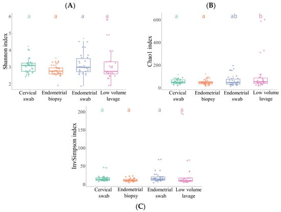 Chicago/Turabian StyleHeil, B. A., M. van Heule, S. K. Thompson, T. A. Kearns, E. L. Oberhaus, G. King, P. Daels, P. Dini, and J. L. Sones. 2023. "Effect of Sampling Method on Detection of the Equine Uterine Microbiome during Estrus" Veterinary Sciences 10, no. 11: 644. https://doi.org/10.3390/vetsci10110644