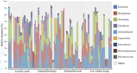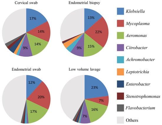 - Santos, T.M.; Bicalho, R.C. Diversity and Succession of Bacterial Communities in the Uterine Fluid of Postpartum Metritic, Endometritic and Healthy Dairy Cows. PLoS ONE 2012, 7, e53048. [Google Scholar] [CrossRef]