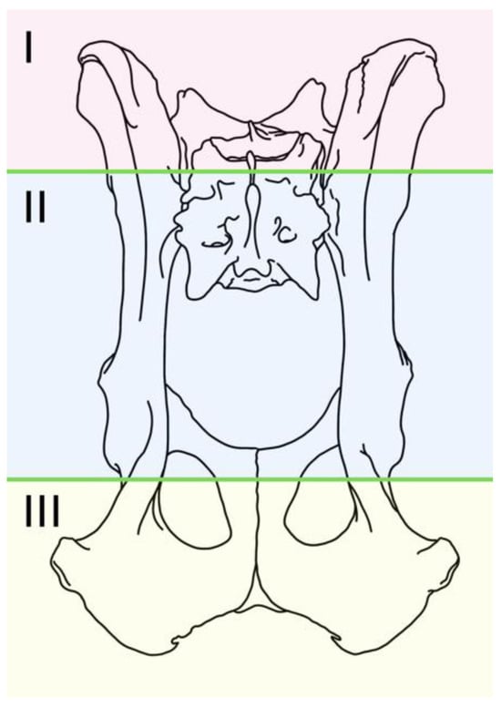 Segments into which the pelvis can be divided according to the proposed nomenclature for pelvic external fixation systems.