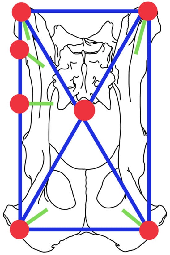 - Bonardi, A.; Rovesti, G.L.; Martini, F.M.; Dondi, F.; Benedini, D.; Barbieri, F. Comparison between Areas of Bone Visualization Using Radiolucent Hybrid Fixator Frames and Graphically Simulated Metallic Frames: An Ex Vivo Study. Vet. Sci. 2022, 9, 120. [Google Scholar] [CrossRef]