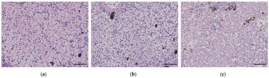 The criteria for categorizing the state of the liver tissue are as follows: (a) normal condition (30–45%), (b) fatty change (>45%), and (c) atrophy (<30%) (Scale bar = 50 μm).