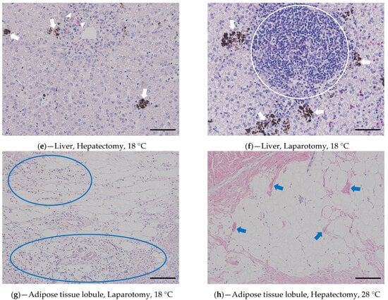 Data curation was performed on a per-group basis using image analysis, categorized according to the three conditions of hepatocytes: normal, fatty change, and atrophy (Figure 2). Furthermore, statistical analyses were conducted separately for each liver condition, even within the same low (or high) temperature group.