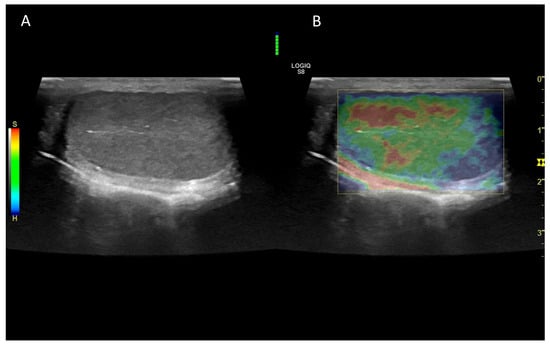 The imaging modality of choice for the evaluation of the reproductive system in both humans and animals is ultrasonography [], which is also used for the detection and characterization of testicular lesions []. Ultrasonography is safe and minimally invasive, easy and ready to use, rapid to perform and interpret, and less expensive compared with other technologies, such as magnetic resonance or computerized tomography []. The technological advancement in this field has been very fast in recent years, adding to the conventional and well-known ultrasound methodologies, like B-mode ultrasonography and Doppler-based ultrasonography, several advanced techniques, such as contrast-enhanced ultrasonography (CEUS) and ultrasound elastography (UEl). As a consequence, the technological implementation has expanded the diagnostic armamentarium available for the andrologist, increasing the chances of an effective and rapid diagnosis [].