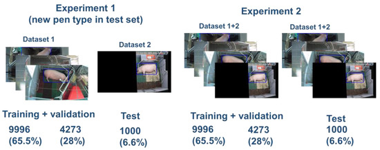 The election of a lower number of frames in dataset 2 (1000) than in dataset 1 (14,242) was motivated by the reduction in the manual workload needed for labeling the frames. The human labeling time was 1 day in dataset 2. As dataset 1 already contained 3 types of farrowing pens and a relatively large number of frames with animals, we assumed that for validating the models and re-training on a fourth environment from dataset 2, a lower number of images was needed.