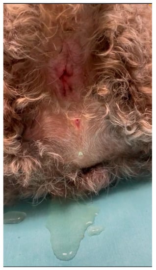 - Martins, J.B.; Rosa, R.; Iglèsias, L.V.; Reisinho, A.; Mestrinho, L.A. Case report: Post-surgical complication in a case of urethral duplication in a dog. Front. Vet. Sci. 2022, 9, 1013270. [Google Scholar] [CrossRef]