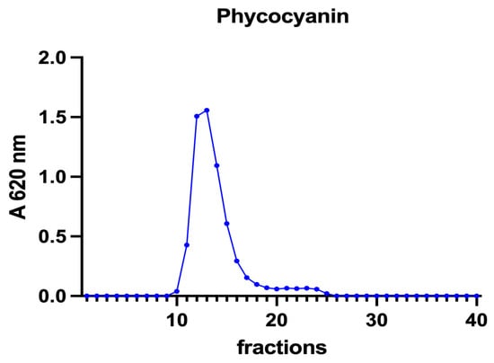 A chromatographic profile of phycocyanin after SEC of the A. platensis extract. Phycocyanin concentration is reported as mg mL−1. The chromatographic profile is the mean of two chromatographies.