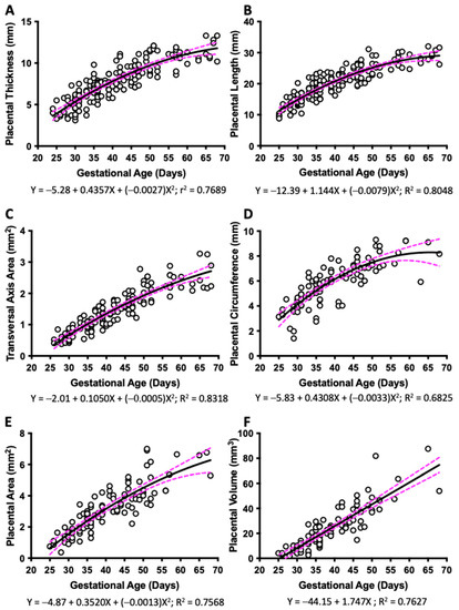 | Placental Width (mm) | 14.43 ± 0.45 | 25.70 ± 0.57 |