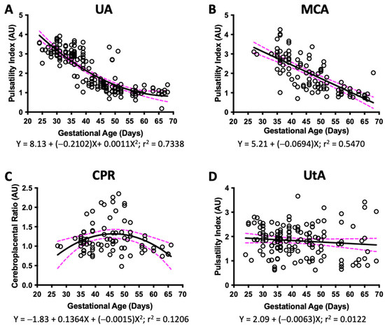 - Bahlmann, F.; Fittschen, M.; Reinhard, I.; Wellek, S.; Puhl, A. Blood Flow Velocity Waveforms of the Umbilical Artery in a Normal Population: Reference Values from 18 Weeks to 42 Weeks of Gestation. Ultraschall Med. Eur. J. Ultrasound 2012, 33, E80–E87. [Google Scholar] [CrossRef]