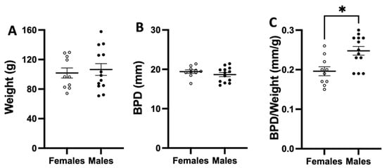 | BPD (mm) 1 | 9.21 ± 0.35 | 10.09 ± 0.35 |