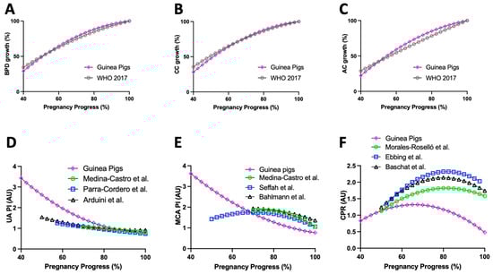 Candia AA, Jiménez T, Navarrete Á, Beñaldo F, Silva P, García-Herrera C, Sferruzzi-Perri AN, Krause BJ, González-Candia A, Herrera EA. Developmental Ultrasound Characteristics in Guinea Pigs: Similarities with Human Pregnancy. Veterinary Sciences. 2023; 10(2):144. https://doi.org/10.3390/vetsci10020144