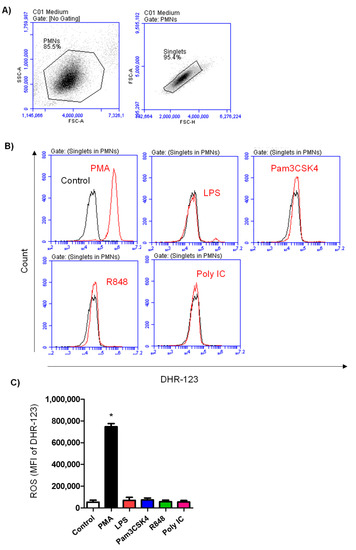 3.3. ROS Production in Neutrophils after TLR Stimulation