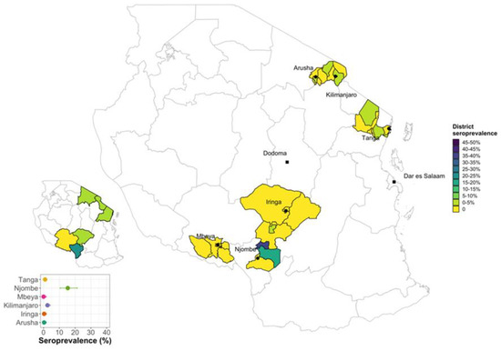 - Sagamiko, F.; Muma, J.; Karimuribo, E.; Mwanza, A.; Sindato, C.; Hang’ombe, B. Sero-prevalence of Bovine Brucellosis and associated risk factors in mbeya region, Southern highlands of Tanzania. Acta Trop. 2018, 178, 169–175. [Google Scholar] [CrossRef] [PubMed]