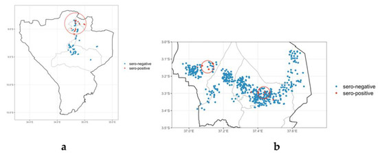 3.3. Brucellosis Spatial Clustering of Seropositive Animals