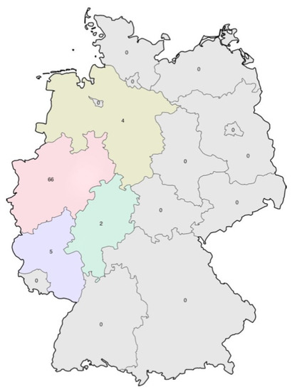 Geographical location in Germany of the surveyed farms. Numbers: number of farms.