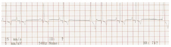 - Estrada, A.H. Cardiac pacing. In Textbook of Veterinary Internal Medicine, 8th ed.; Ettinger, S.J., Feldman, E.C., Cote, E., Eds.; Elsevier: St. Louis, MO, USA, 2017; Section XVI, Chapter 249; pp. 1200–1206. [Google Scholar]