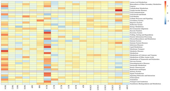 The KEGG function prediction results of cecum content floras in each group are shown in Figure 11.