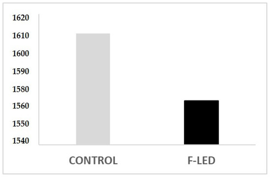 Feed conversion rate resulted more favorably in chickens reared in F-LED (1.567) compared to those raised in CONTROL (1.608) (Figure 2).