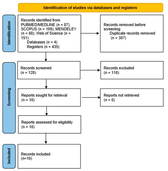 Ten papers were identified as potentially suitable for the systematic review after applying the inclusion and exclusion criteria, and all of them were found to be eligible after being fully read. The selection process is illustrated in Figure 1.