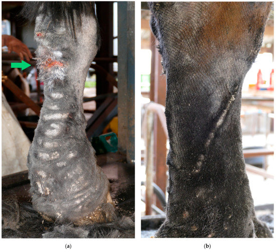 - Ferraro, G.L. Chronic progressive lymphedema in draft horses. J. Equine Vet. Sci. 2003, 23, 189–190. [Google Scholar] [CrossRef]