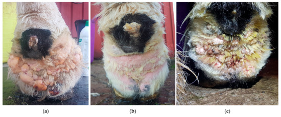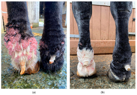- Johnsen, H.; Chronic Proliferative Pastern Dermatitis. Chronic Progressive Lymphedema. 2021. Available online: https://chronicprogressivelymphedema.com/chronic-proliferative-pastern-dermatitis/ (accessed on 4 May 2022).
