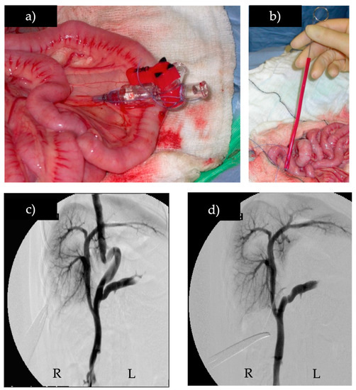 Surgical treatment of a congenital portosystemic shunt (CPSS) aims to restore portal hepatic perfusion by CPSS closure but may lead to life-threatening portal hypertension if the portal vein and its branches are underdeveloped, which may apply to as many as 84% of dogs [1]. Thin film banding (TFB), ameroid ring constrictor (ARC), or polyacrylic acid-silicone devices aim to induce the gradual and eventual complete occlusion of the shunt, while partial suture ligation leaves the shunt partially open [2,3,4,5]. Continued shunting after surgery may occur because of residual flow through the shunt due to incomplete occlusion, a missed branch due to technical error at surgery, and/or the development of multiple acquired shunts (MAS) [6,7,8,9,10].