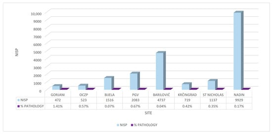 - Bulatović, J.; Marković, N.; Krstić, N.; Bulatović, A.; Mitrović, M.; Marinković, D. Animal Diseases in the Central Balkan Eneolithic (ca. 4500–2500 BC)—A Diachronic Perspective on the Site of Bubanj, South-Eastern Serbia. Int. J. Osteoarchaeol. 2022, 32, 303–316. [Google Scholar] [CrossRef]
