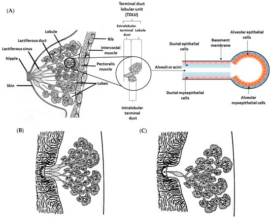 - Biswas, S.K.; Banerjee, S.; Baker, G.W.; Kuo, C.-Y.; Chowdhury, I. The Mammary Gland: Basic Structure and Molecular Signaling during Development. Int. J. Mol. Sci. 2022, 23, 3883. [Google Scholar] [CrossRef]