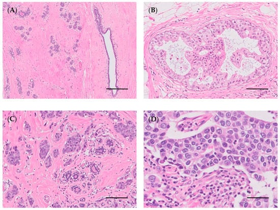 - Stolnicu, S. Histology of the Normal Breast, Normal Changes, and Abnormalities of Breast Development. In Practical Atlas of Breast Pathology; Stolnicu, S., Alvarado-Cabrero, I., Eds.; Springer: Cham, Switzerland, 2018; pp. 1–25. ISBN 978-3-319-93256-9. [Google Scholar]