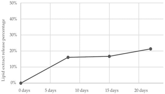 Percentage of release of the lipid extract in collar samples analyzed with GC-FID at baseline, and after 8, 15 and 22 days.
